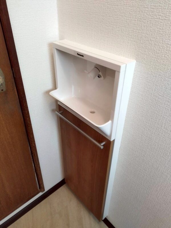 トイレの壁紙張替・クッションフロア張替・手洗い器交換の工事でした。